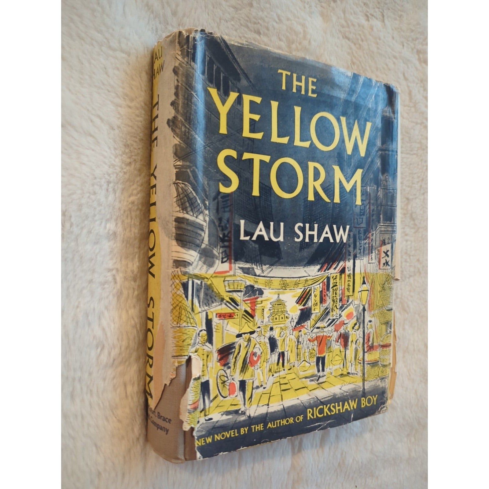 Dust jacket in rough shape, please see pictures. The product is a vintage first edition hardcover book titled "The Yellow Storm" by authors S Y Shu, Lau Shaw, and She Lau. Originally written in Chinese, the book was translated into English by Ida Pruitt and published by Harcourt Brace and Company in 1951. It falls under the genre of cultural history and focuses on national history, specifically delving into Chinese culture and history during the 20th century. The book includes features such as a dust jacket and is set in Beijing, China, making it a valuable addition to any collection of cultural history literature.